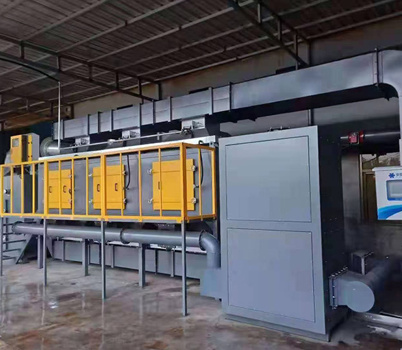 蓄熱式催化氧化裝置(Regenerative Catalytic Oxidizer),結合蓄熱式熱力氧化及觸媒氧化,此項技術可降低RTO系統的溫度,有效提高破壞效率及減少燃料的用量。RCO系統是以RTO的構造作為基礎,在氧化爐中加上一層特殊的催化劑材料,利用催化劑氧化提供足夠破壞VOCs所需的熱能,以降低RTO系統的操作溫度,提高氧化反應的速率。與熱力燃燒不同,RCO屬無焰燃燒,處理入口廢氣超過300℃會自動關閉助熱器,因其針對環境友好、高效節能而被廣泛應用。